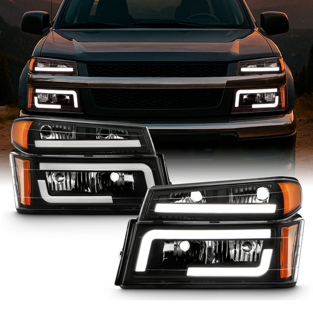 AKKON - Fits 2004-2012 Chevy Colorado / GMC Canyon 06-08 Isuzu i-Series [LED Tube Parking] Black Headlights Headlamp Pair LH+RH