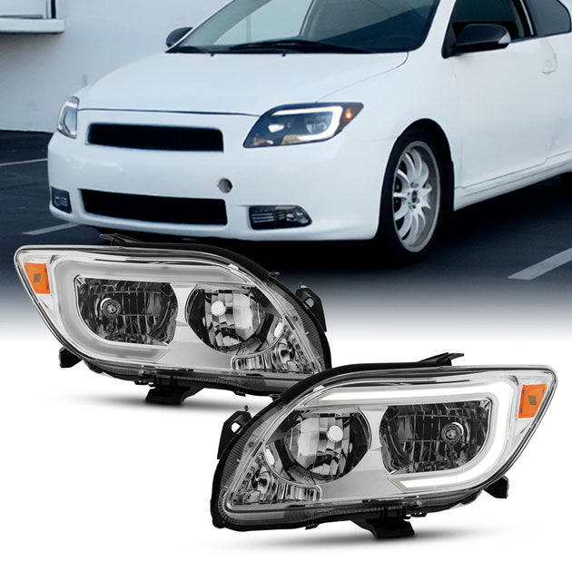 AKKON - Fits 2005-2007 Scion tC Chrome Headlights Pair Driver+Passenger w/ LED DRL Running Tube Bar Replacement