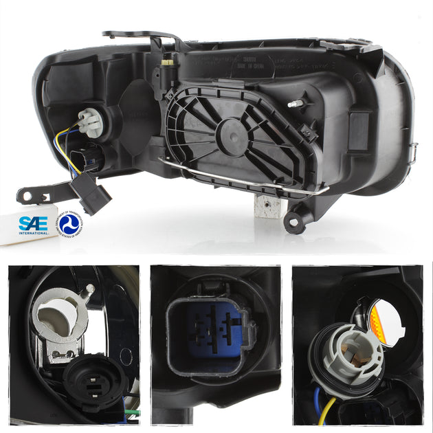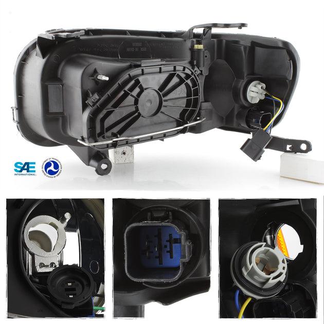 AKKON - Fits 2005-2007 Scion tC Black Headlights Pair Driver+Passenger w/ LED DRL Running Tube Bar Replacement