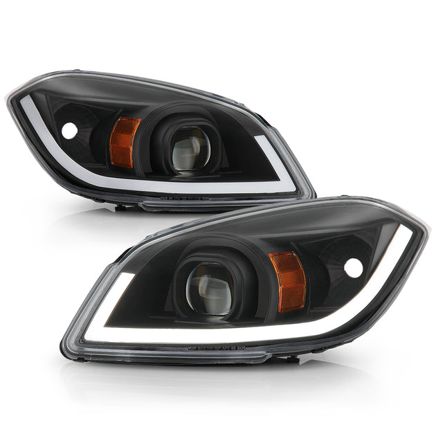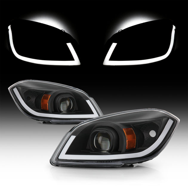 AKKON - Fits 2005-2010 Chevy Cobalt 05-06 Pontiac Pursuit 07-10 G5 [Halogen Type] LED Light Bar Projector Black Headlights Pair