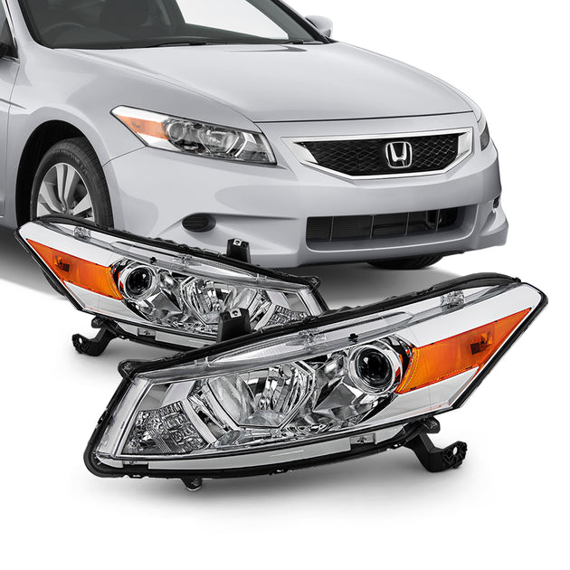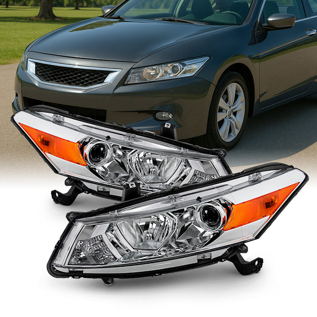 AKKON - Fits 2008-2012 Honda Accord 2Door Coupe Chrome Halogen Type Headlamps Driver+Passenger Headlights Pair