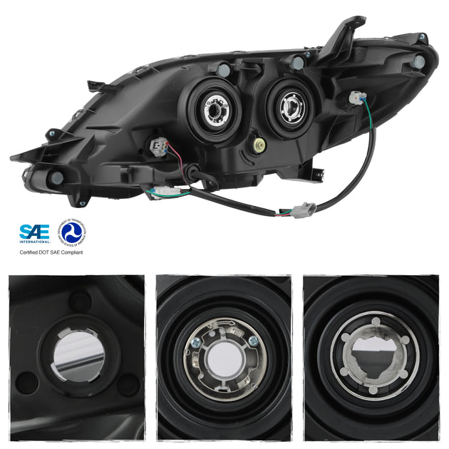 AKKON - Fits 2011-2020 Toyota Sienna Projector Black Headlights Pair Driver+Passenger w/ LED DRL Running Lamp