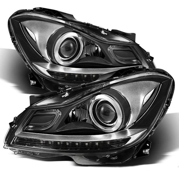 AKKON - Fits 2012 2013 2014 Mercedes W204 C-Class 2015 Benz C250 C350 AMG Projector LED DRL Black Headlights Pair Left+Right