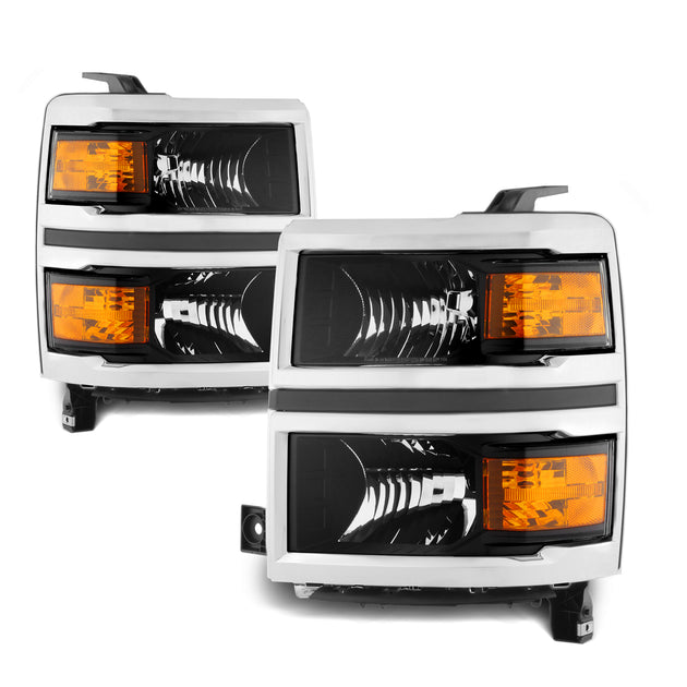 AKKON - Fits 2014 2015 Chevy Silverado 1500 Pickup [Halogen Style] Black Headlights Headlamp Pair 14 15 w/ Chrome Trim