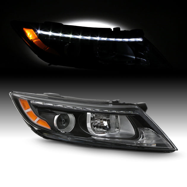 AKKON - Fits 2014-2015 Optima [Halogen Type] [USA Built] Black Headlight w/ LED Position Headlamp Driver Left Replacement
