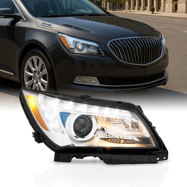 AKKON - Fits 2014-2016 Buick LaCrosse [HID/Xenon Type] Projector Chrome Headlight Driver Left Side LED DRL Running w/AFS