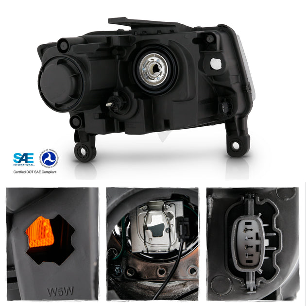 AKKON - Fits 2014-2016 JEEP Grand Cherokee [Halogen Type] Projector Black Headlights Pair Headlamps Driver+Passenger Replacement