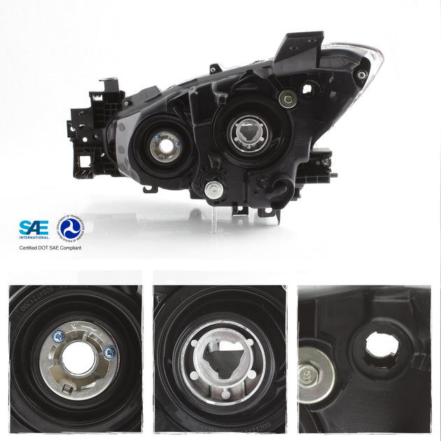 AKKON - Fits 2014-2016 Mazda 3 [OE Halogen Type] Projector Black Headlights OE Headlamp Driver+Passenger Pair 15 16