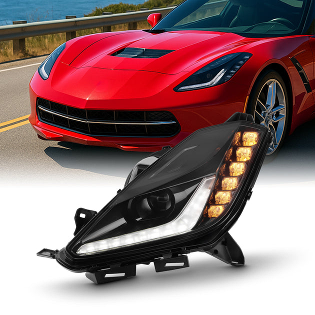 AKKON - Fits 2014-2019 Chevy Corvettle [HID/Xenon Type] Black Headlight Driver Left Side w/LED DRL Tube Turn Signal Lamp
