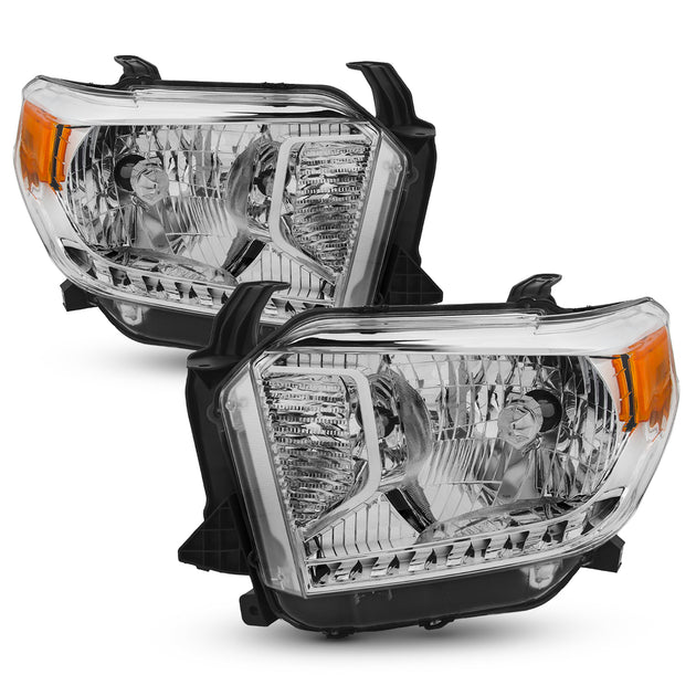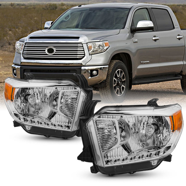 AKKON - Fits 2014-2021 Toyota Tundra [Halogen Type] Chrome Headlights Headlamp Pair Driver Left+Passenger Right 14-21