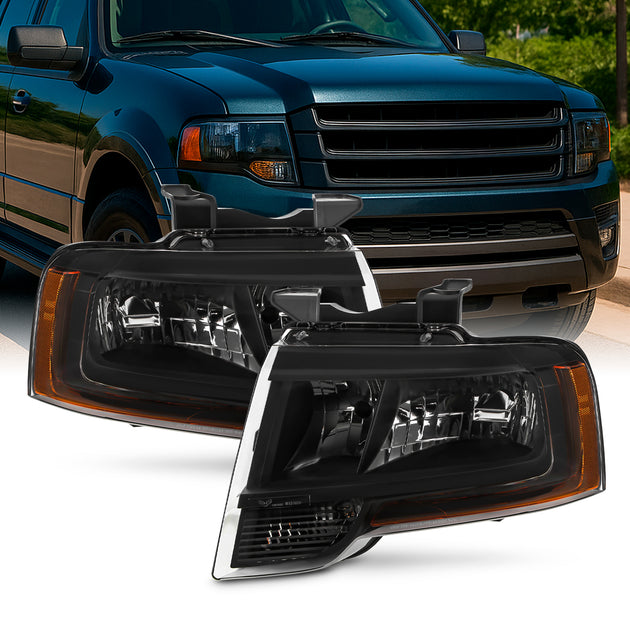 AKKON - Fits 2015-2017 Ford Expedition Black Headlights Headlamps Pair Driver Left+Passenger Right Replacement 15 16 17