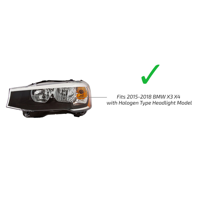 AKKON - Fits 2015-2018 BMW X3 / X4 [Halogen Upgrade] Projector Black Headlights Pair w/ LED DRL Running Lamp Replacement