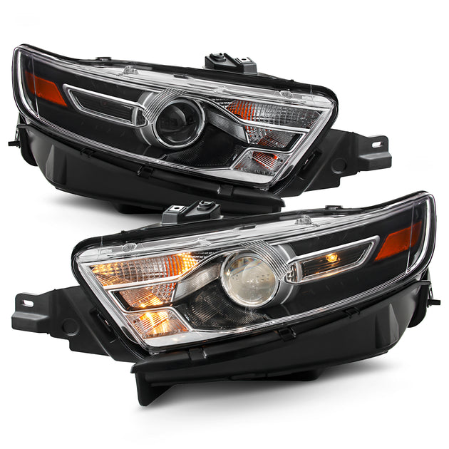 AKKON - Fits 2016-2019 Ford Taurus [Halogen Type] Projector Black Headlight Headlamp Pair Driver left + Passenger Right