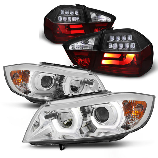 Regular price $518.99This is a 100% brand new pair of Headlights Replacement Assemblies in Midnight Licorice Black Housing With Crystal Clear Lens & Tail lights in Polished Platinum Chrome Housing With Red Smoked Lens Compatible With: 2006-2008 BMW... -