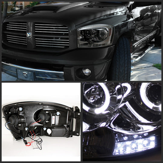 Regular price $258.98This is a 100% brand new pair of Headlights Replacement Assemblies in Polished Chrome Housing With Crystal Clear Lens Compatible With: 2006-2008 Dodge RAM 1500 Models 2006-2009 Dodge RAM 2500 | 3500 Models Not Compatible Dodge... -