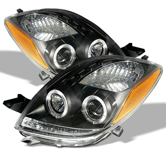 AKKON - For 2006-2008 Toyota Yaris 2-Door Hatchback LED Halo Ring Projector Headlight | Right & Left Side Black Housing