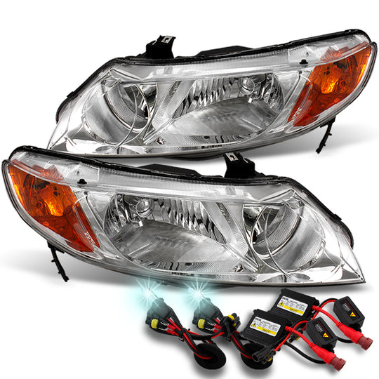 Regular price $111.99This is a 100% brand new pair of Headlights Replacement Assemblies with HID Conversion Kit in Polished Chrome Housing With Crystal Clear Lens Compatible With: 2006-2011 Honda Civic 4 Doors Sedan Models ***NOT COMPATIBLE with 2... -