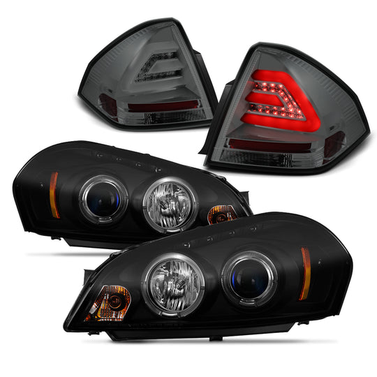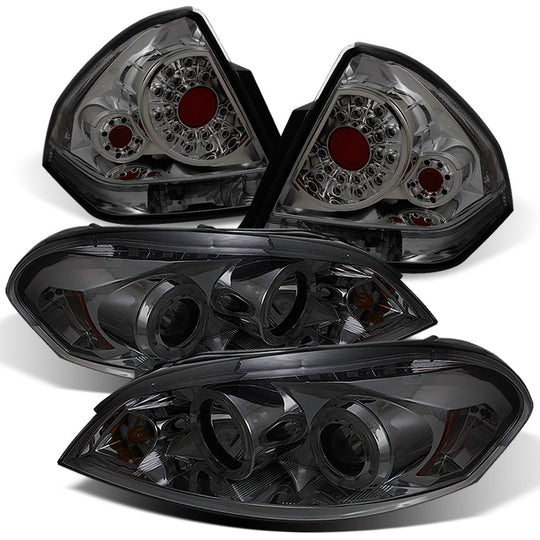 AKKON - For 2006-2013 Chevy Impala Smoked LED Halo Projector Headlights+ Smoked LED Tail Lights Lamp