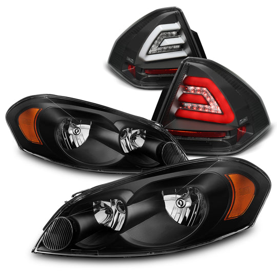 AKKON - For 2006-2013 Chevy Impala Black Bezel Headlights Replacement + Black LED Tail Lights Left+Right Lamps Combo