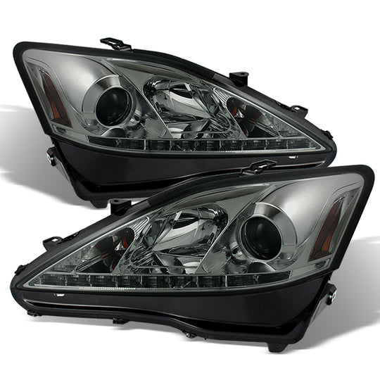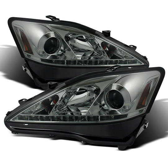 AKKON - For 2006-2013 Lexus IS250 IS350 2IS Smoked Smoke Halo Projector DRL Daylight LED Strip Headlights Replacement Pair