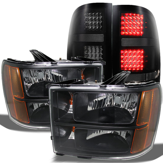 AKKON - For 2007 2008 2009 2010 2011 2012 2013 2014 GMC Sierra Black Smoked Headlights + Black Smoke LED Tail Lights
