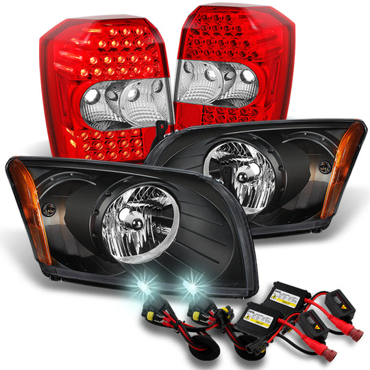 AKKON - For 2007 2008 2009 2010 2011 2012 Dodge Caliber Black Headlights + Red LED Tail Lights + 8000K HID Kit