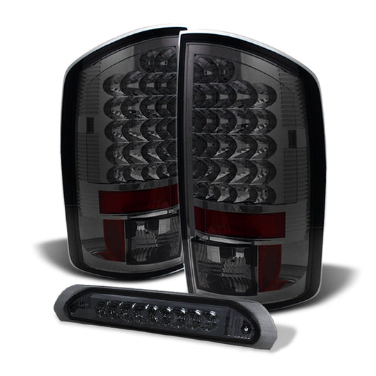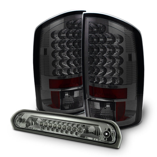 AKKON - For 2007 2008 2009 Dodge Ram Smoked LED Tail Light + Smoked LED 3rd High Mount Cargo Brake Lamp