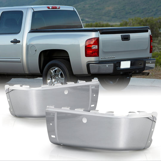AKKON - For 2007- 2013 Chevy Silverado / GMC Sierra 1500 2500 Rear Bumper Set Cap End - Chrome (w/o Sensor Hole)