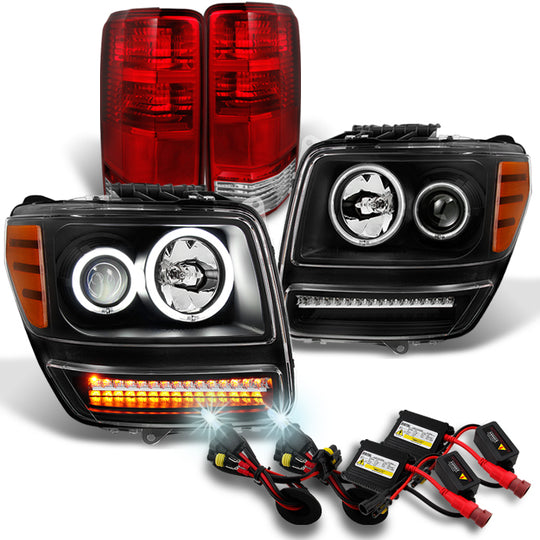 AKKON - For 2007-2012 Nitro Dual CCFL Halo Black Projector LED Signal Headlights + Dark Red Tail Lights Combo