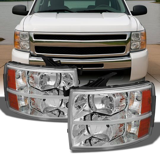 Regular price $88.99This is a 100% brand new pair of Headlights Replacement Assemblies in Polished Chrome Housing With Crystal Clear Lens Compatible With: 07-13 Chevy Silverado 1500 All Models 07-14 Chevy Silverado 2500HD All Models 07-14 Chevy Silverado... -