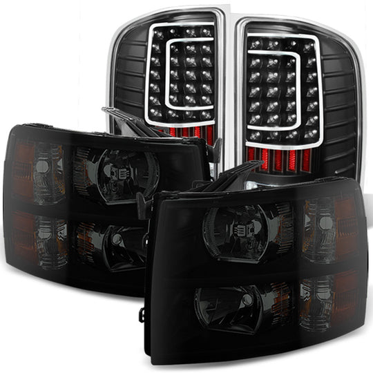 AKKON - For 2007-2013 Chevy Silverado 1500 2500 3500HD Black Smoked Headlights + Black LED Tail Lights Lamps