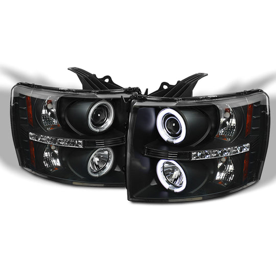AKKON - For 2007-2013 Chevy Silverado Pickup Dual CCFL Halo Projector Black Housing Headlights + Tail Lamps LED Set