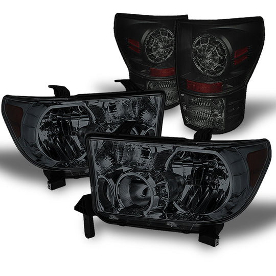 AKKON - For 2007-2013 Toyota Tundra Pickup Black Headlights + Black Smoked LED Tail Lights + Smoked Fog Lamps