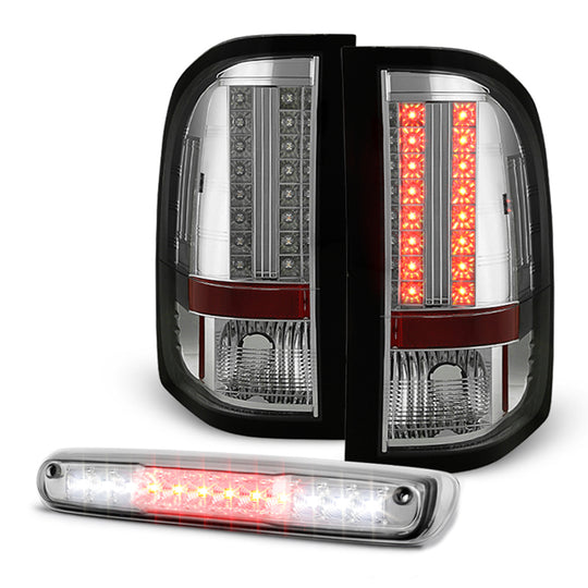 Regular price $165.99This is a 100% Brand New LED Tail Lights & LED 3rd Brake Lights Replacement in Chrome Housing With Clear Lens Compatible With: 2007-2013 Chevy Silverado 1500 2007-2014 Chevy Silverado 2500 HD/ 3500 HD 2007-2014 GMC... -