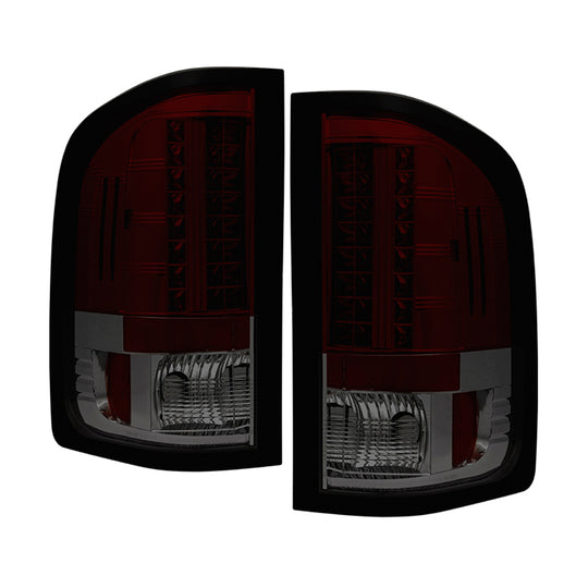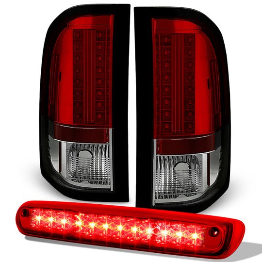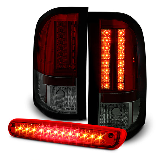 AKKON - For 2007-2014 Chevy Silverado 1500 2500HD 3500 GMC Sierrra Red Smoked LED Tail Lights + Red LED 3Rd Brake Lamps