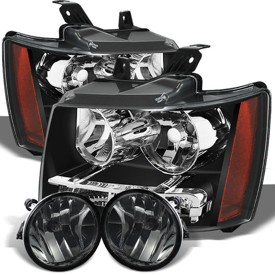 AKKON - For 2007-2014 chevy Suburban Tahoe Avalanche Black Clear Len Headlight + Smoked Bumper Fog Lights Lamps