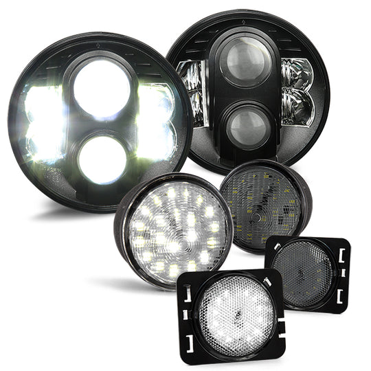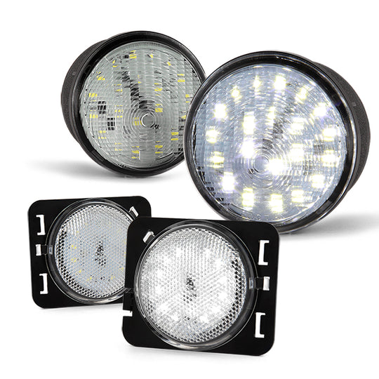 AKKON - For 2007-2016 Jeep Wrangler Full LED Front Signal Parking Lights + Fender Side Marker Lights Assemblies
