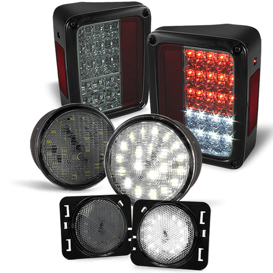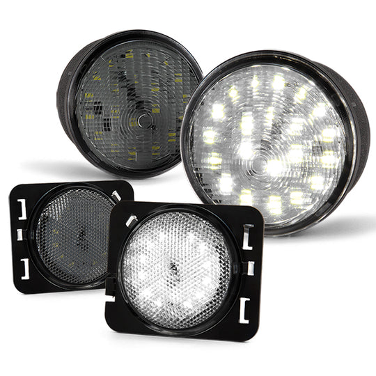 AKKON - For 2007-2016 Jeep Wrangler Full LED Smoke Signal Parking Lights + Fender Side Marker Lights Assemblies