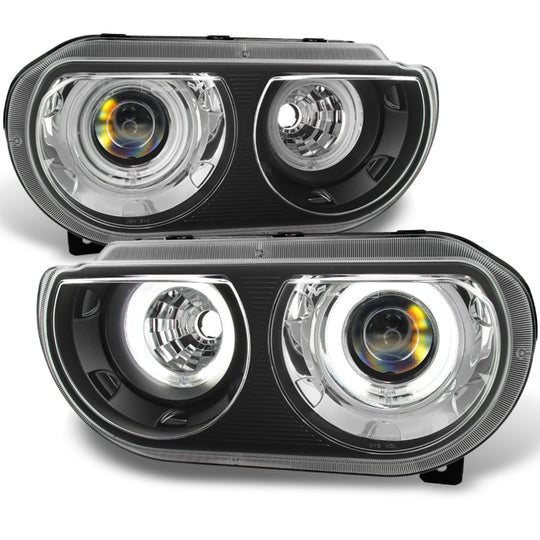 AKKON - For 2008 2009 2010 2011 2012 2013 [Halogen Model] Dodge Challenger Black CCFL Projector Headlights LH + RH Pair