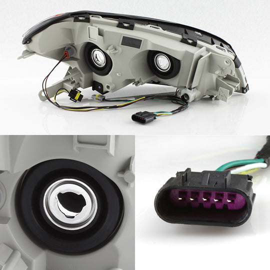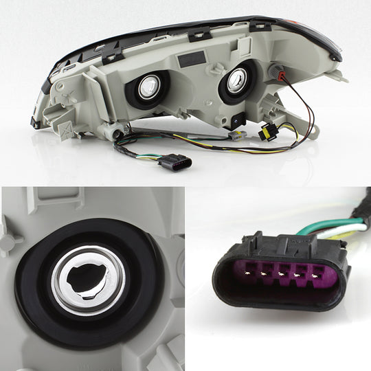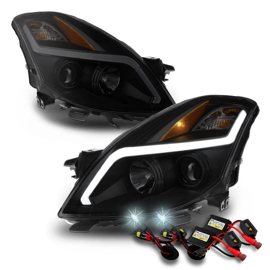 AKKON - For 2008 2009 Nissan Altima 2-Door Coupe LED Strip Projector Headlight Black Housing Assembly Pair Lamps