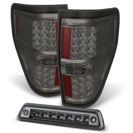 AKKON - For 2009-2014 Ford F-150 Pickup Truck LED Smoked Tail lights Brake Lamps + LED Smoke 3rd Brake Cargo Lamp Combo