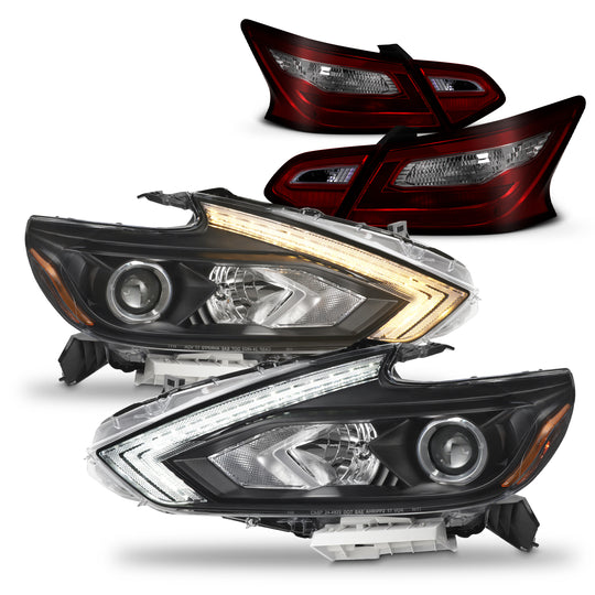 Regular price $435.99This is a 100% brand new pairs of Headlights in Black Housing and Tail Lights Replacement Assemblies in Smoked Housing Compatible With: 2016-2018 Nissan Altima Attention: Compatible with Factory Halogen Type Headlights Model ATTN: Not Compatible... -