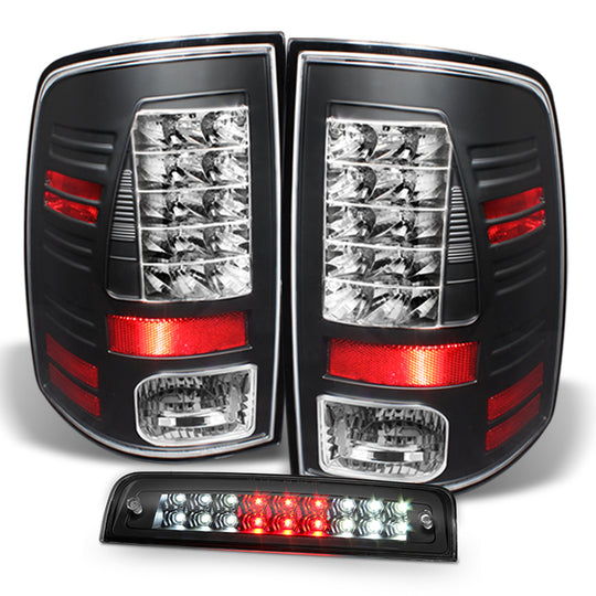 AKKON - For 2009-2018 Dodge Ram LH Left + RH Right Replacement Black LED Tail Lights + LED 3rd Brake Light Set