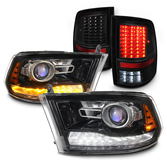 AKKON - For 2009-2018 Dodge Ram LED DRL Projector Switchback Headlight| LED Black Taillights Lamps
