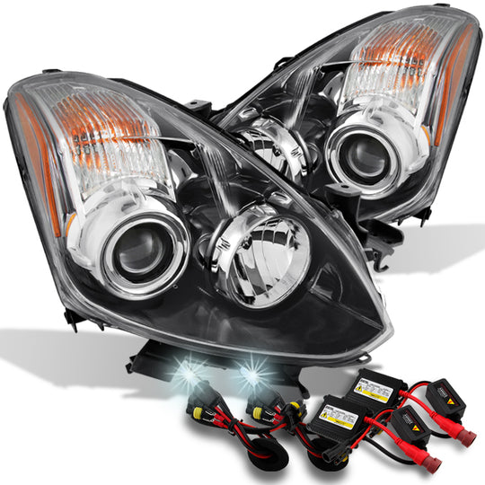 AKKON - For 2010 2011 2012 2013 Altima 2 Door Coupe Black Halogen Type Projector Headlights Pair + 6000K HID Kit