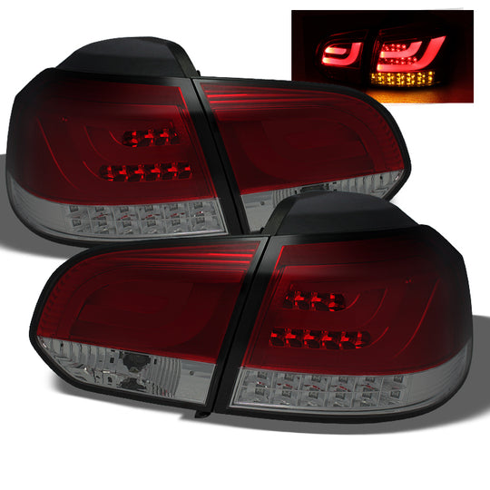 AKKON - For 2010-14 VW Golf/GTI G2 Type LED Daytime Running Lamp Bar Tail Lights Assembly Chrome Housing Red Smoke Lens