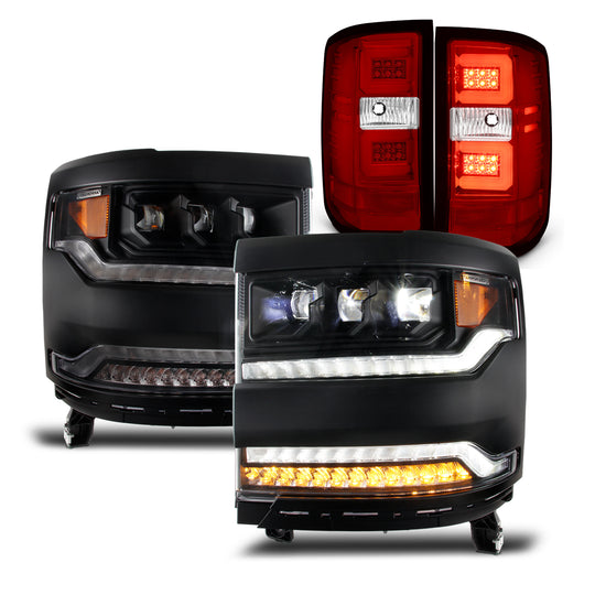 Regular price $843.98This is a 100% brand new pair of Replacement Headlights in Black Housing Clear Lens, Tail Lights in Red Housing & Clear Lens Compatible With: 2016-2018 Chevy Silverado 1500 ***Only Compatible with Models with Factory LED... -
