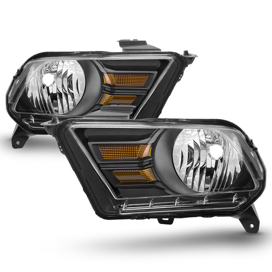 AKKON - For 2010-2014 Ford Mustang Halogen Model Black Housing Headlight Lamp Replacement L+R