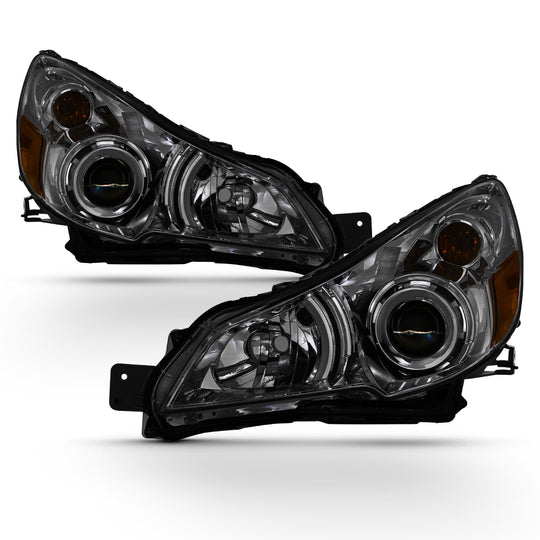 AKKON - For 2010-2014 Subaru Legacy/Outback Daytime Running Lamp Projector Headlights Chrome Housing Smoked Lens Full Set