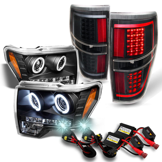 AKKON - Fits 09-14 F-150 F150 CCFL Halo Projector Black Headlight+ LED [Light Bar] Tail Light + 8000K HID Xenon Slim Kit Combo